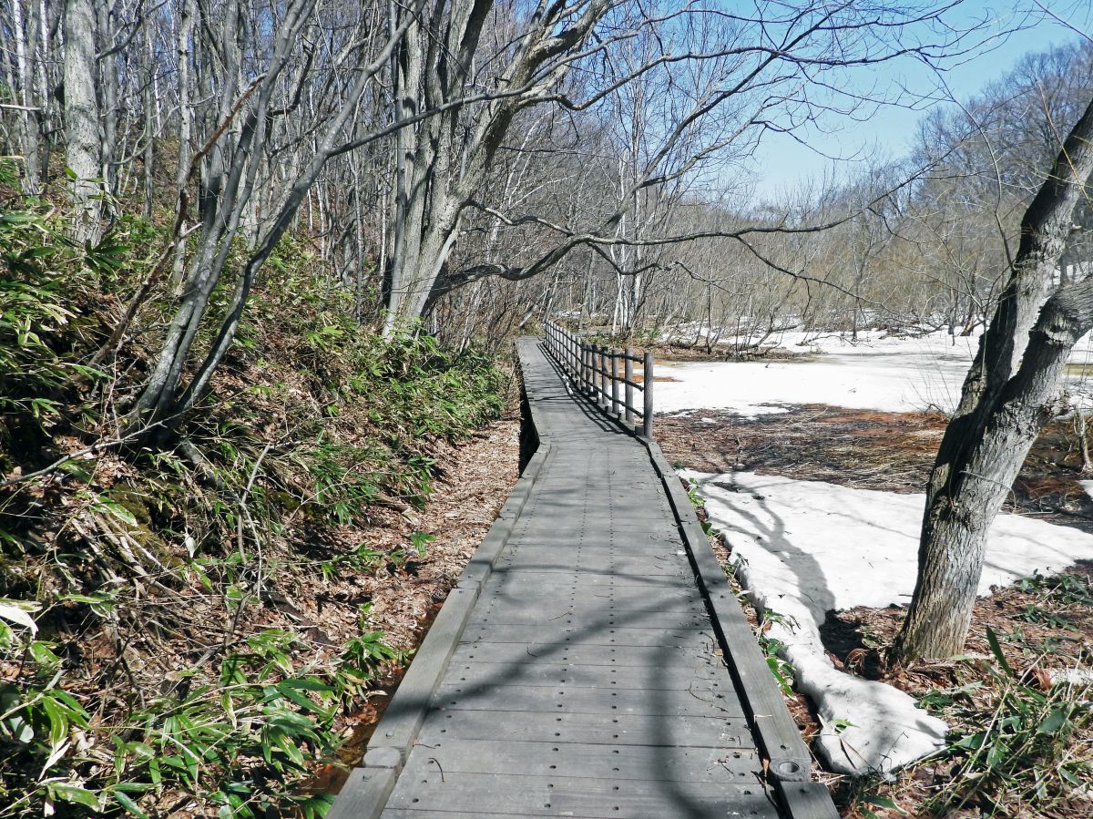 エゾノリュウキンカは第一駐車場下の湿原でも、複数箇所で開花を始めました。