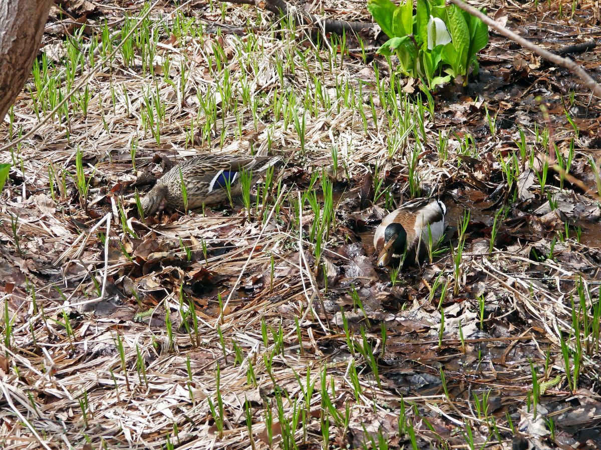 人工池でマガモのつがいが採餌をしていました。(写真4,5)