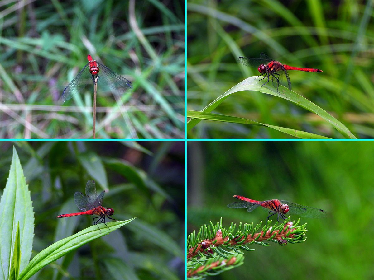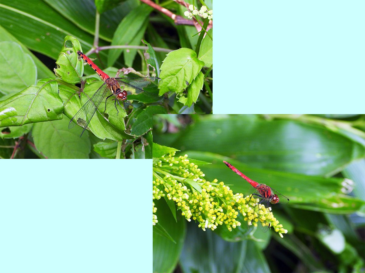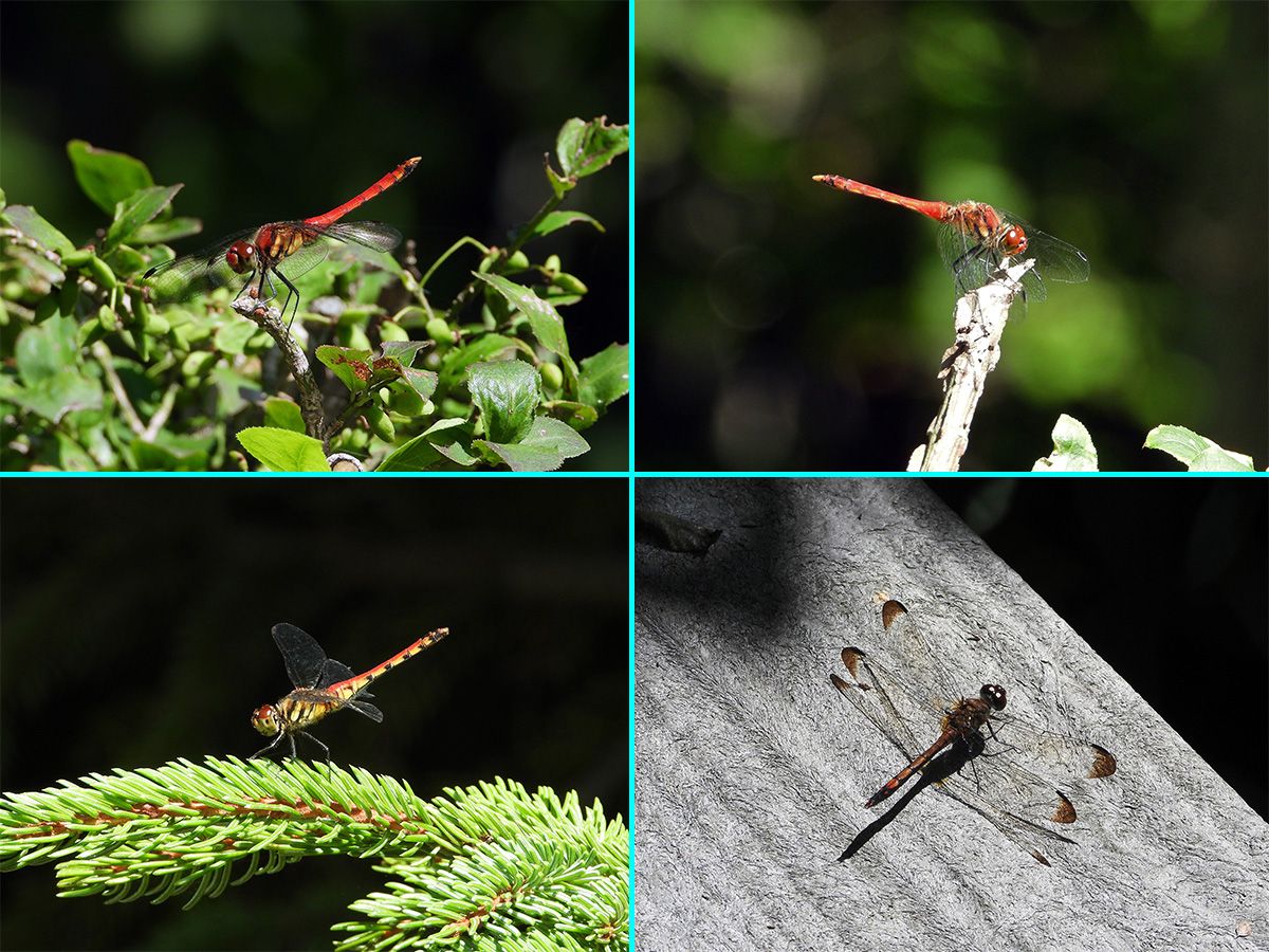 湿原や人工池の周辺では多くのトンボが飛びまわっていて、特に赤トンボが大半を占めている感じです。