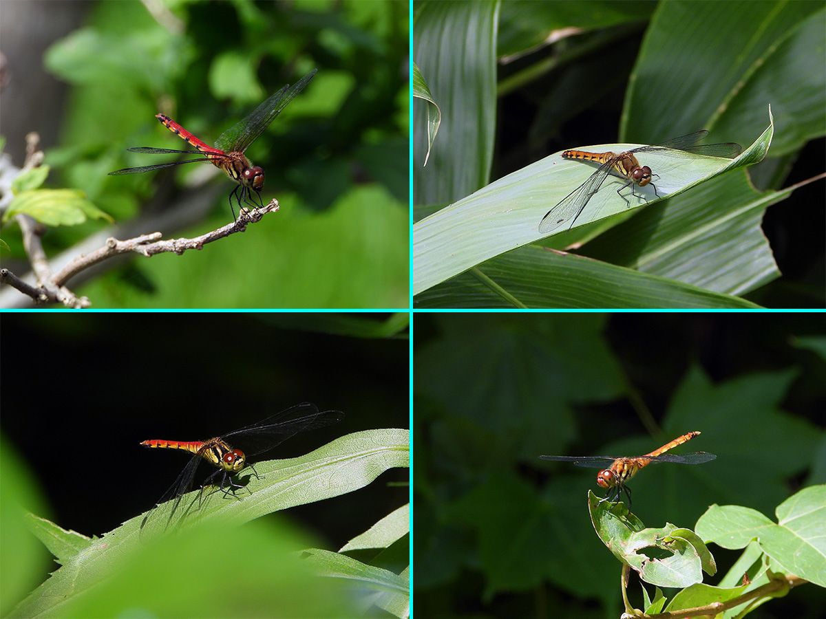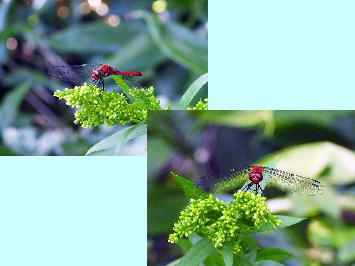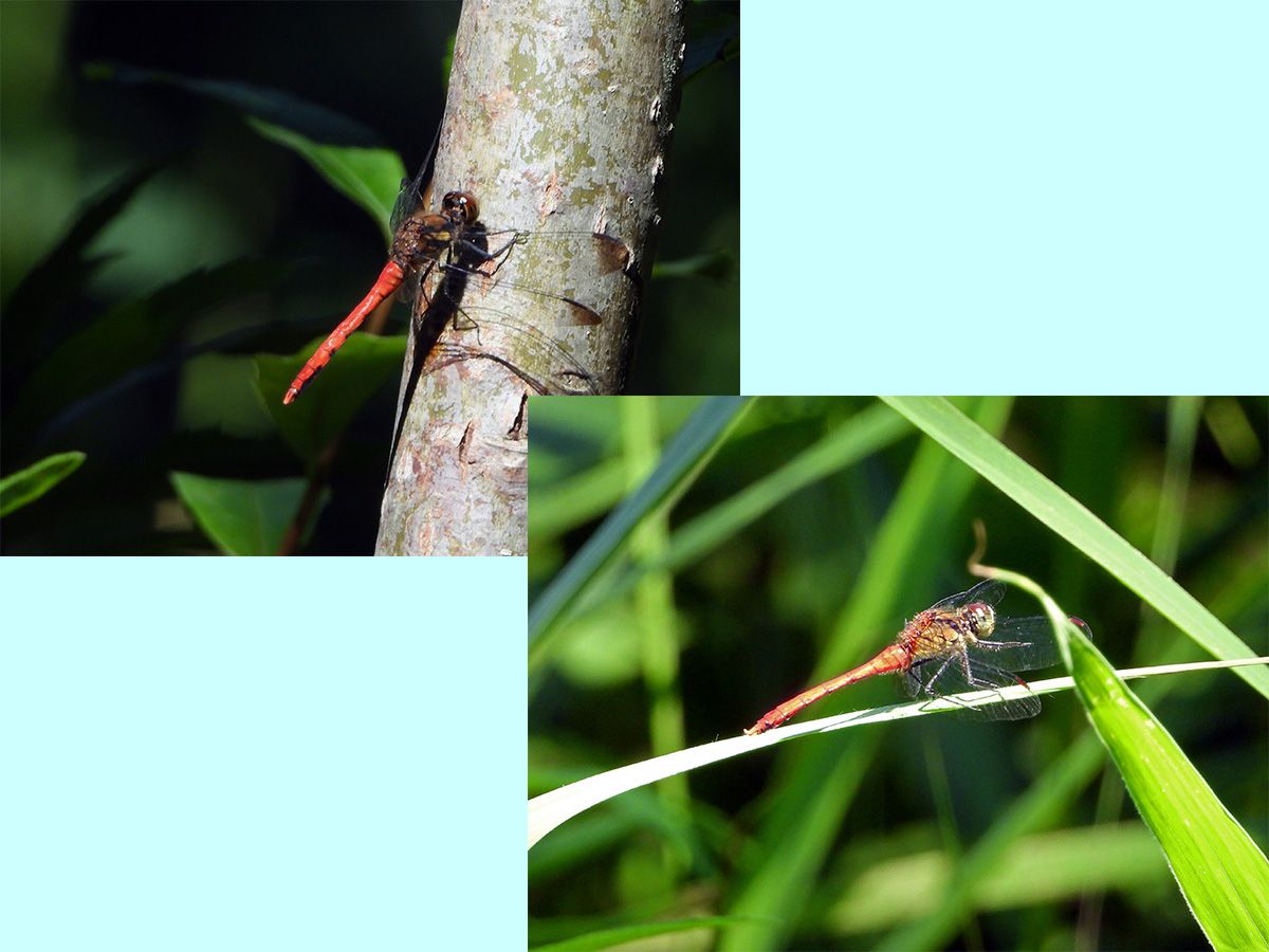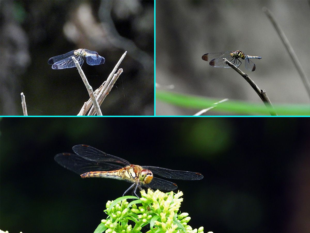 湿原や人工池の周辺では多くのトンボが飛びまわっていて、特に赤トンボが大半を占めている感じです。