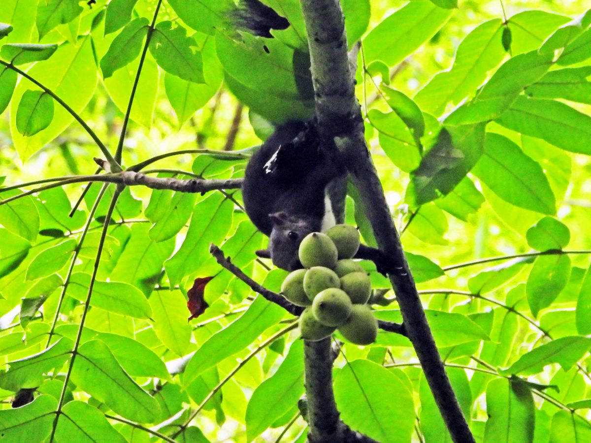 樹木の上部を眺めていたら、暗がりの中にぶどうらしき実を見つけました。