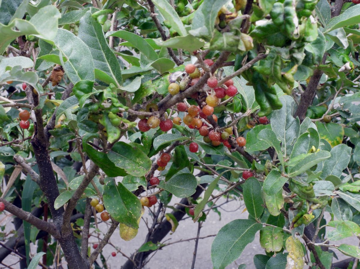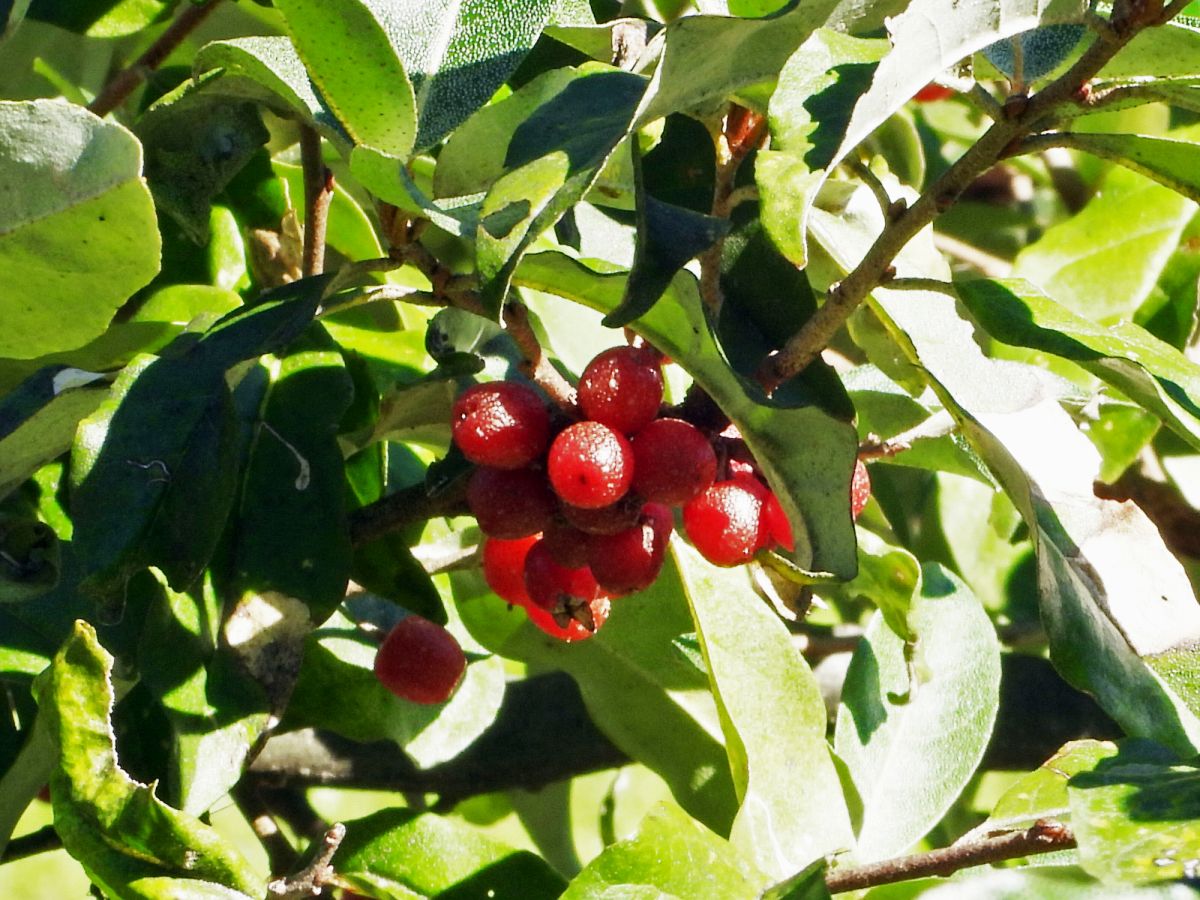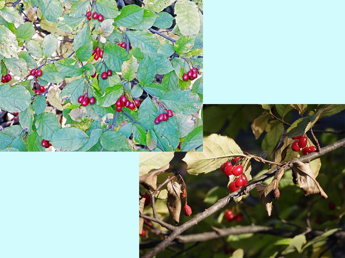 ナツグミもしばらく前から綺麗な真紅になっていますが、味は秋グミにはおよばないようです。(写真4)