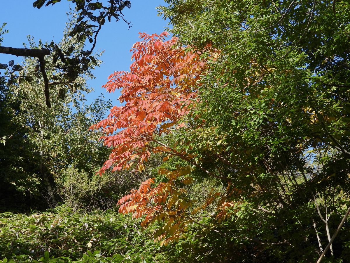 写真2は、今日見た紅葉の中でいちばん赤かった木です。