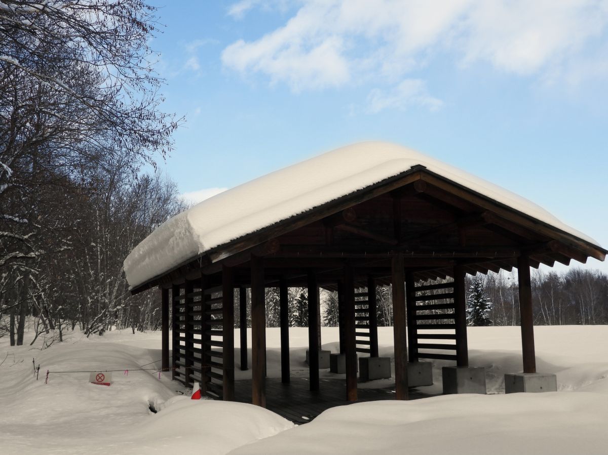 広場の東屋の屋根の積雪が劇的に減少していました。(写真2)