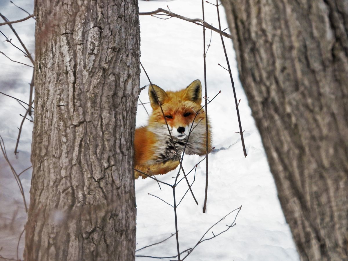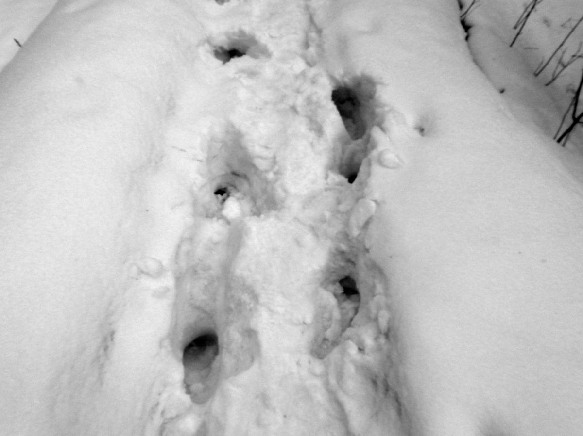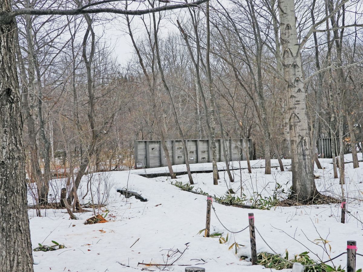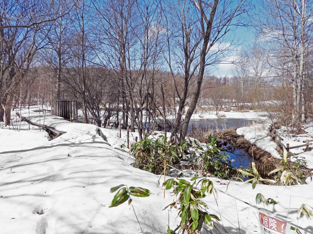 人工池に続く木道も、だいぶ雪が少なくなりましたが、湖面はまだ確認できませんでした。(写真4)