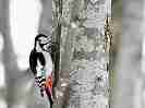 同じ場所付近で、斜面の上の方で大きめの鳥が木の幹を移動しているように見えたので、これも撮影をしておきましたが、アカゲラでした。(写真8)