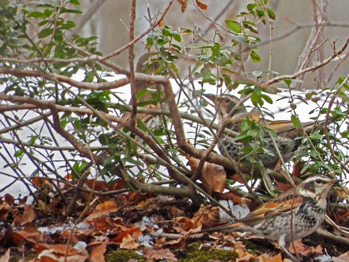 ツグミが遊歩道で採餌をしていました。(写真3)