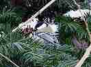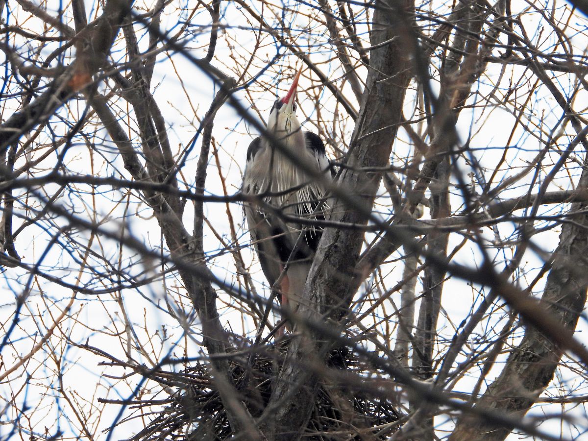 アオサギの巣は、高木の先端近くにつくられていますが、小枝を積み上げた程度の簡単な造りで、吹きさらし状態です。
