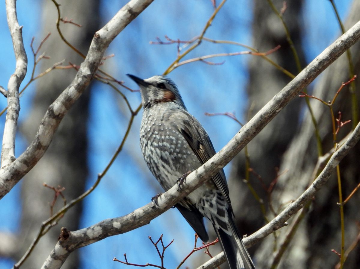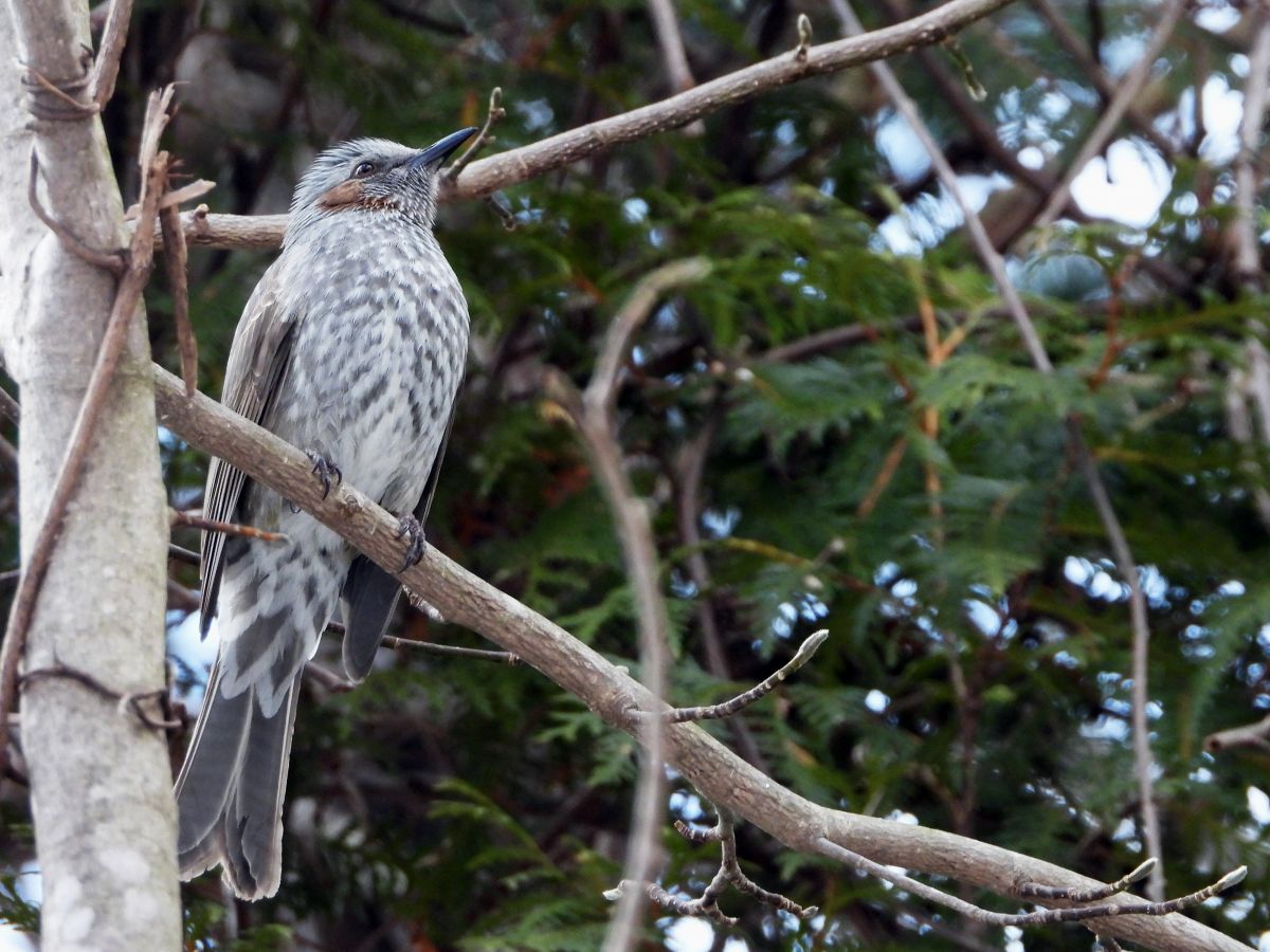 公園内では野鳥の囀りがところどころで聞こえていましたが、強風が吹いているためか、群れで飛んでいる野鳥は見かけませんでした。