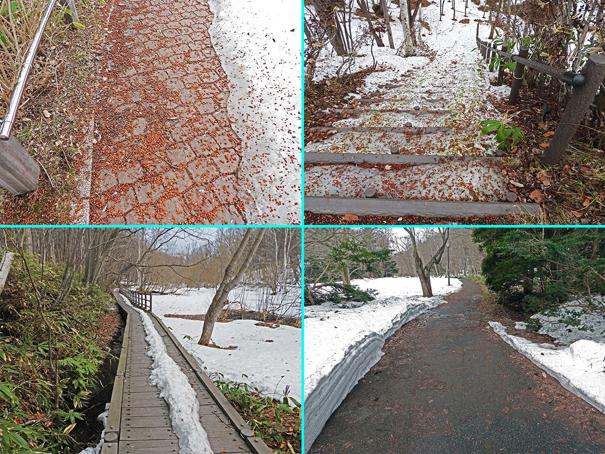 その他の部分は、まだ雪が残っており、歩きづらい状態が続いています。(写真1、下段)