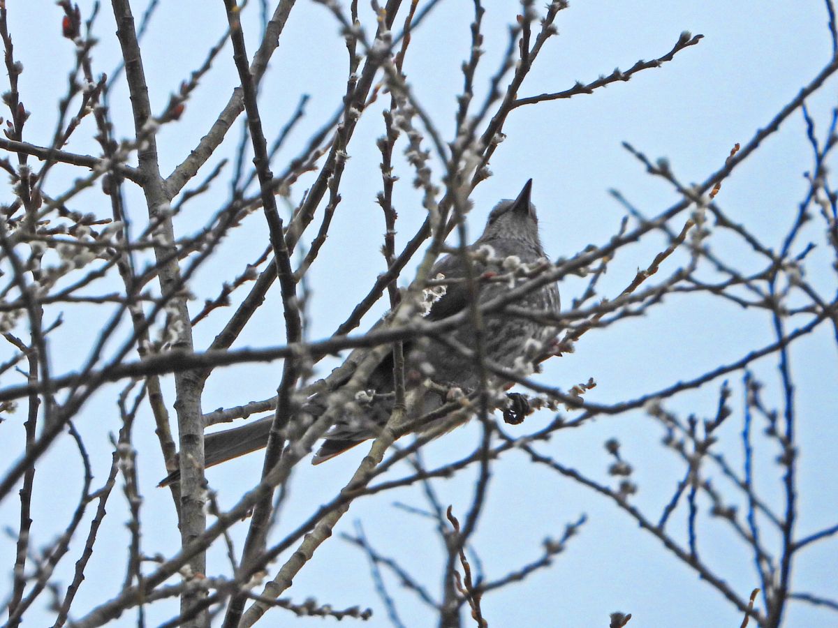 人工池の近くで、ツグミが1羽飛んできて、私のすぐそばの木にとまりました。(写真2)