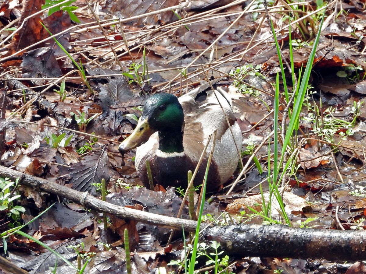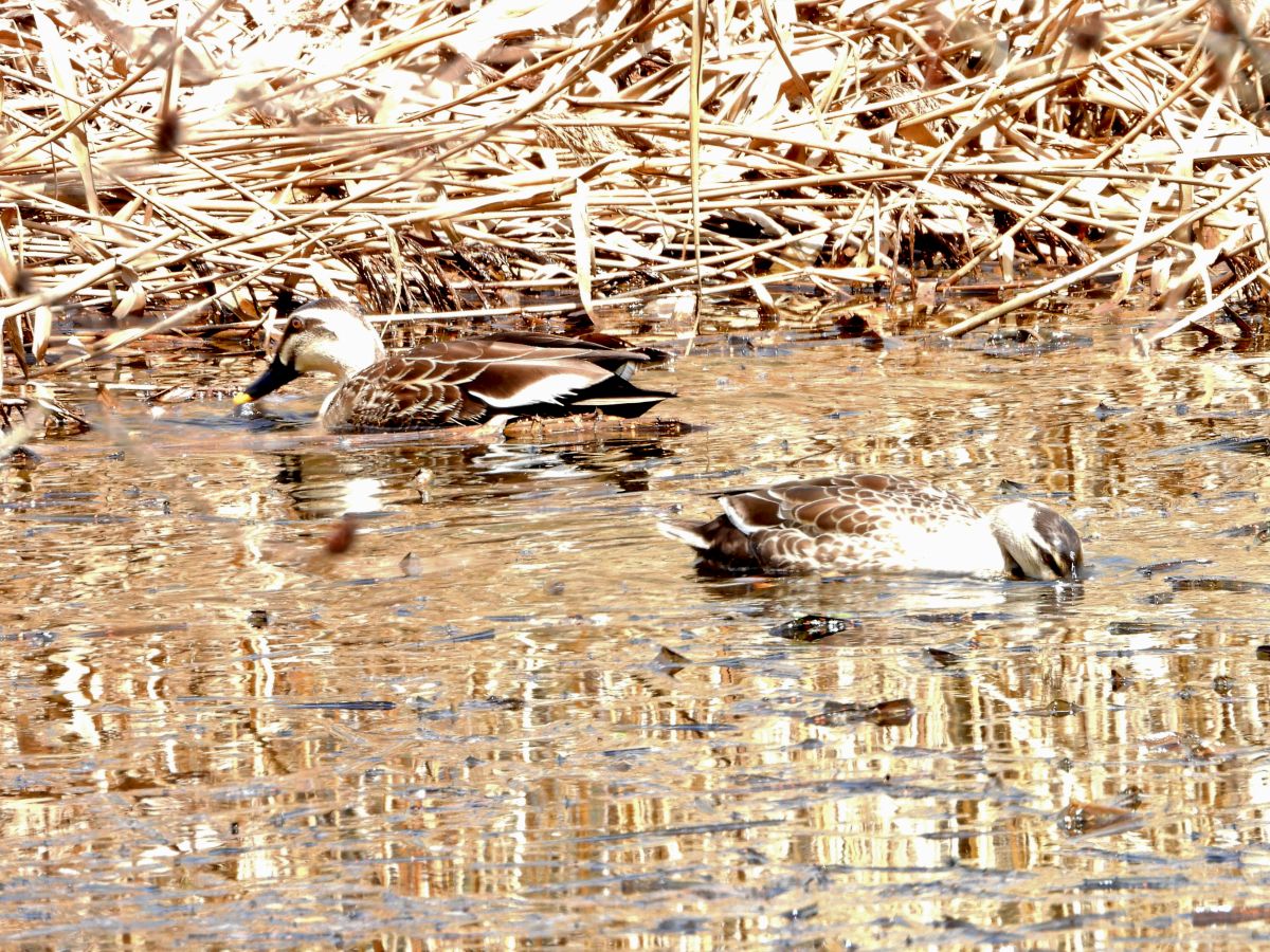 人工池を訪れるカモはマガモが圧倒的に多いのですが、たまにカルガモが姿を見せることがあります。