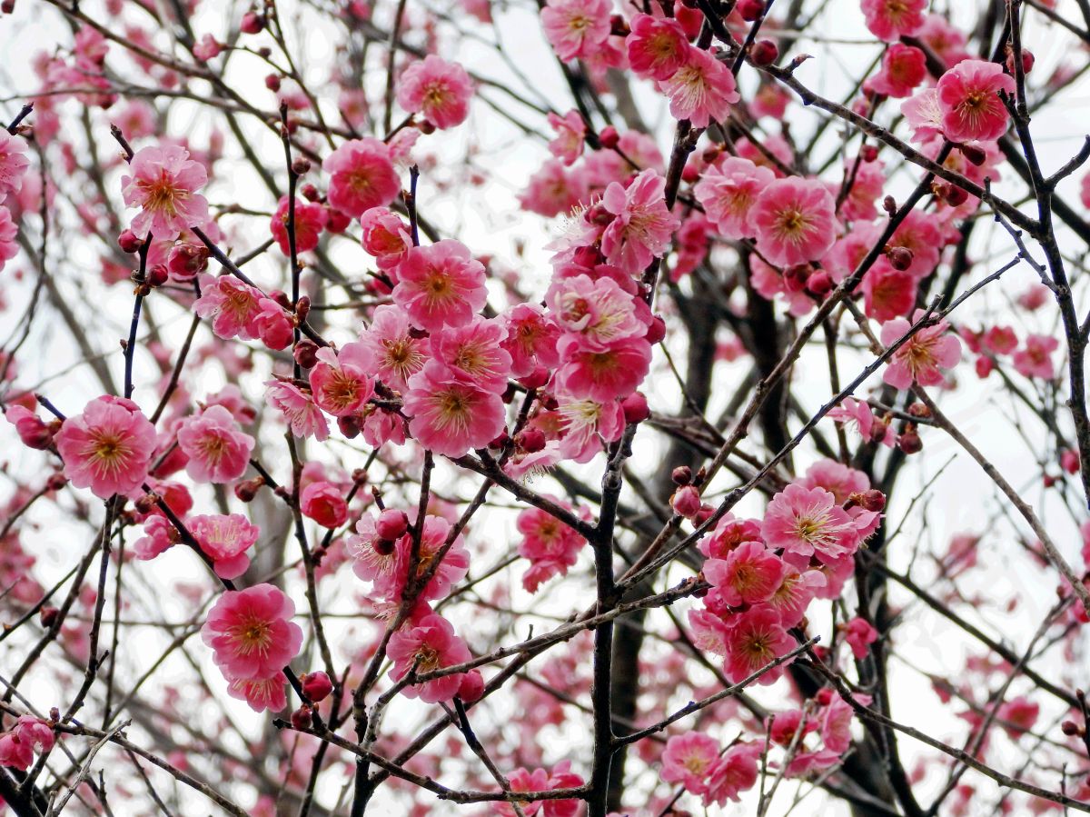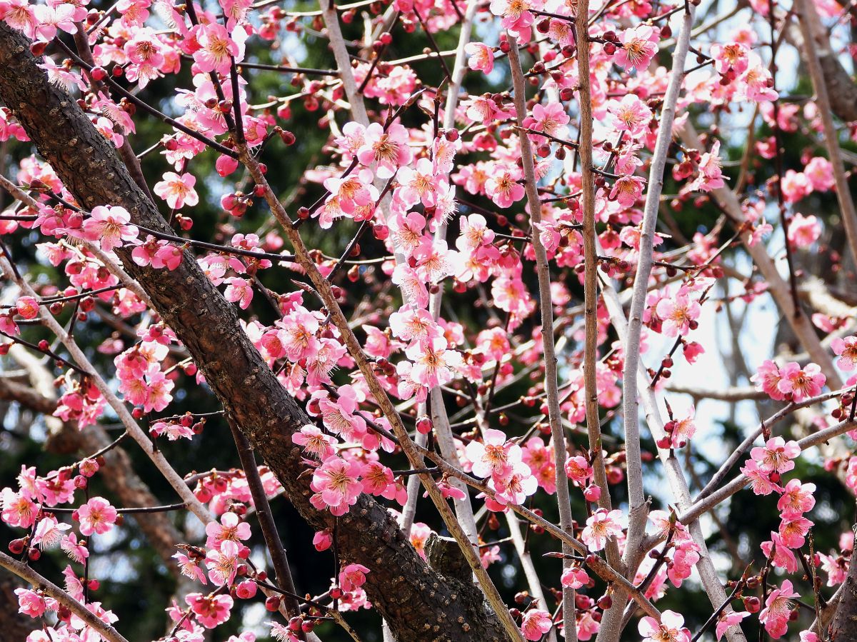 梅園では、紅梅・白梅とも開花が進んでいます。(写真4〜9)