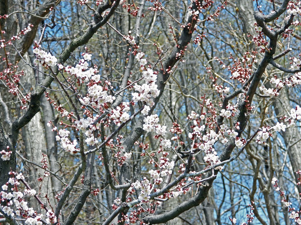 開花が白梅よりも遅れていた紅梅ですが、陽当たりの良い斜面では一気に開花が進んでおり、白梅を追い抜いた感じです。(写真5〜9)