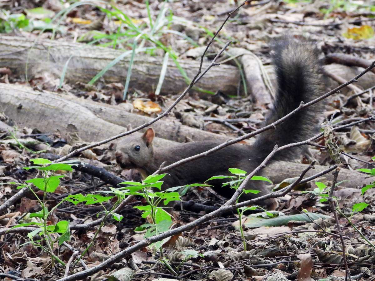 1回目に訪れたときは姿がありませんでしたが、2回目に訪れたときに子供のエゾリス2匹が採餌をしていました。