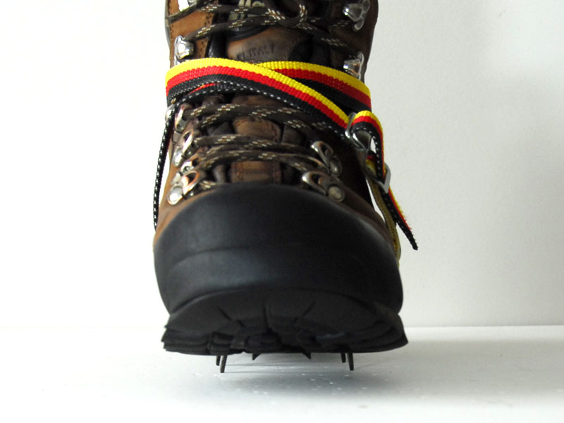 私の場合、冬季間は6本爪アイゼンを常用していますので、ツボ足登山時に必要により非常用として携帯します。