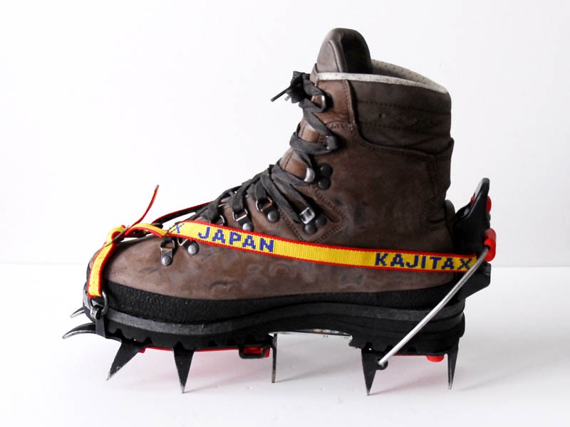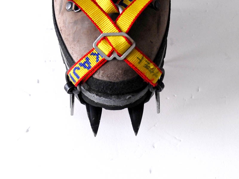 登山に行けないので、手持ちのアイゼン4種類とストック3種類の写真を連載することにしました。