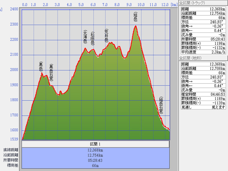 累積標高(+)地形 1189m (黒岳→旭岳)