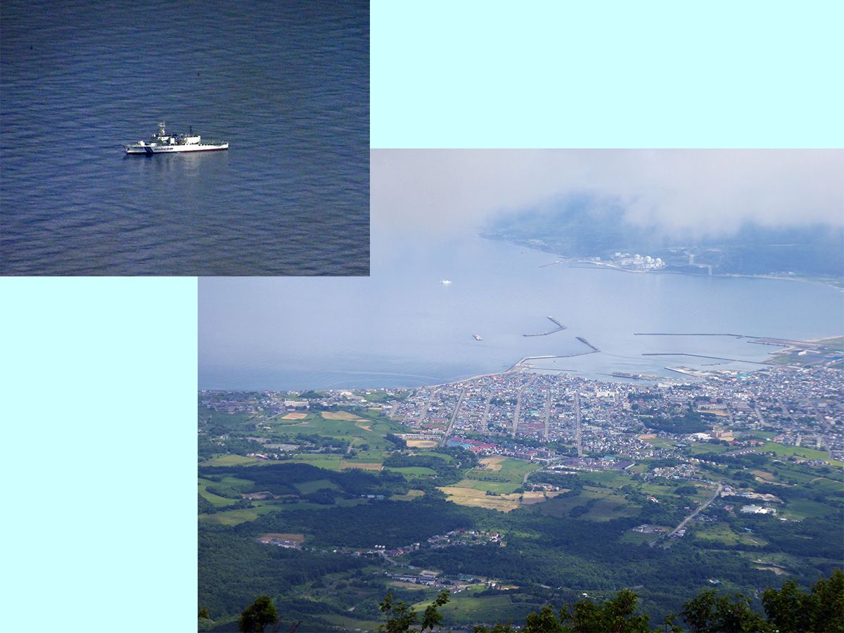 岩内港と岩内町はほぼ見えていて、港内には大型巡視船が停泊していました。