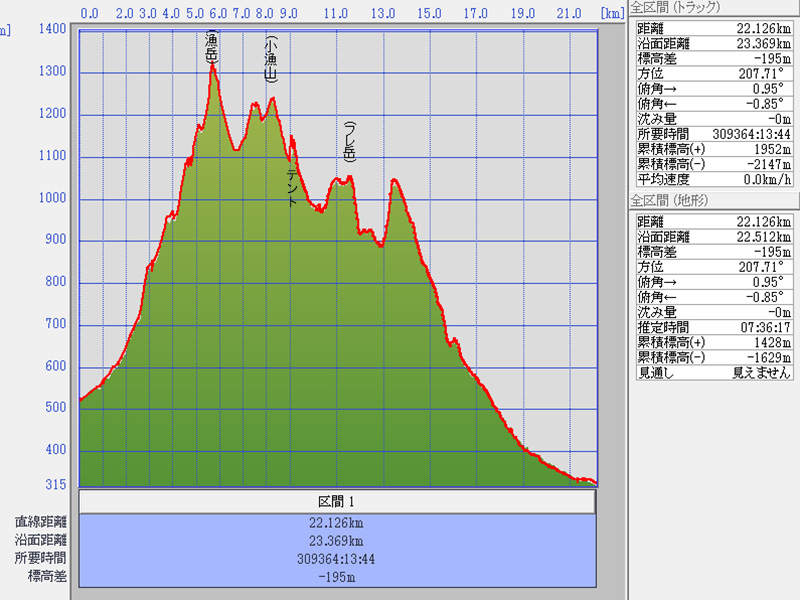 累積標高(+)トラック 1952m
