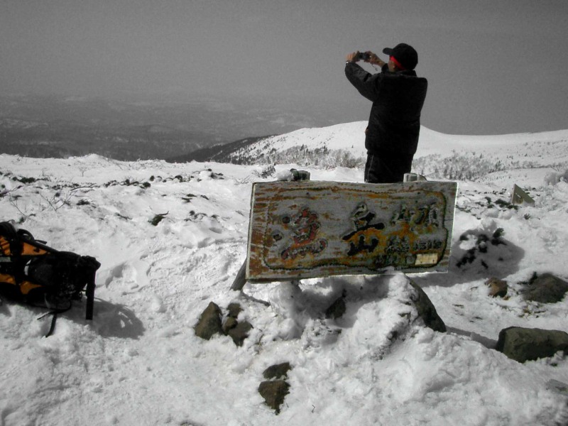 丹鳴岳の急登部分は雪が堅く、ガイドが度々ピッケルでステップを切る場面があった。