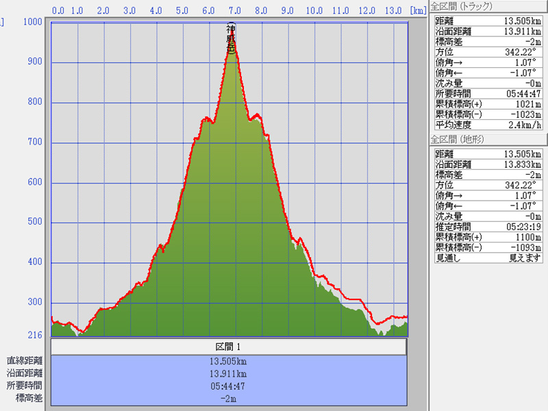 累積標高(+)地形 1100m