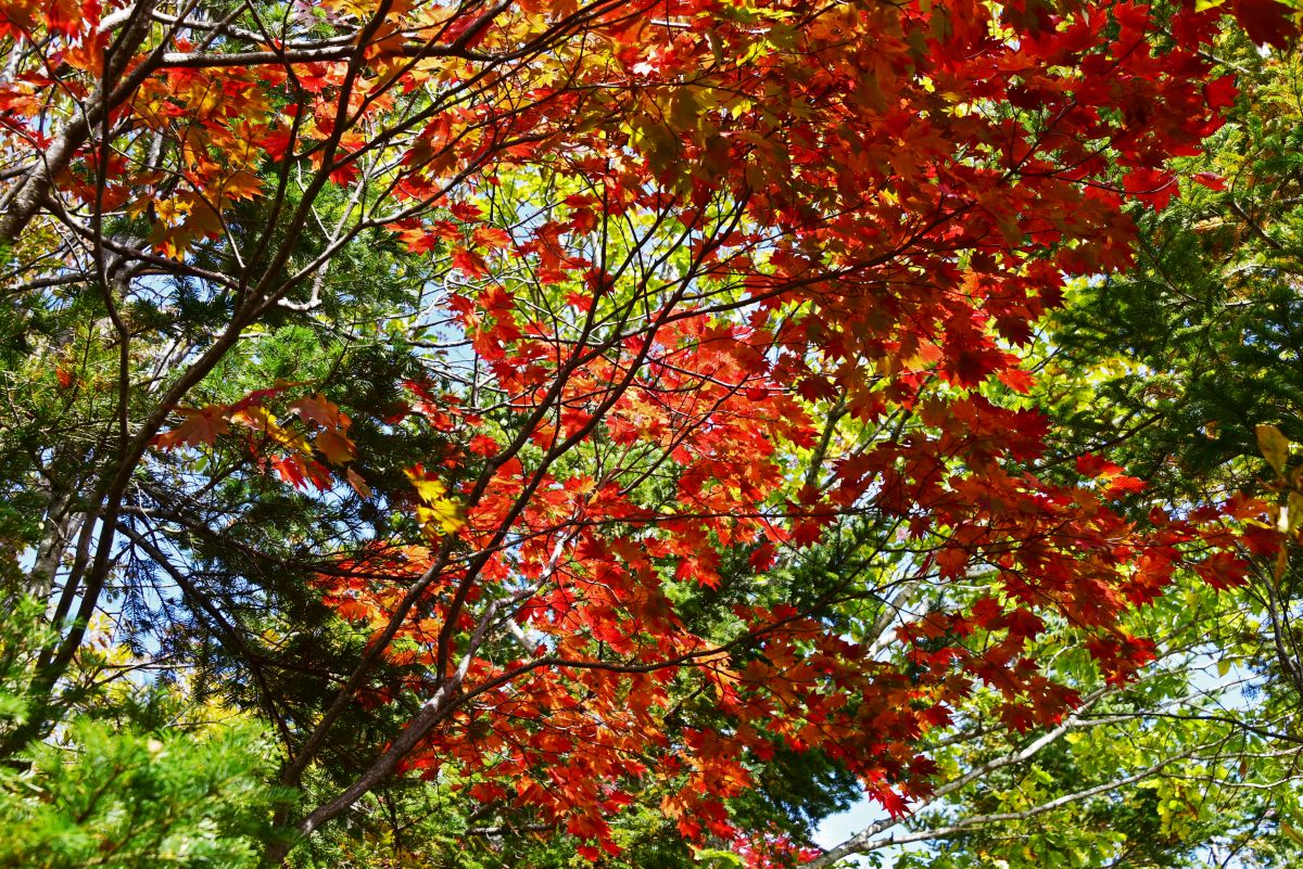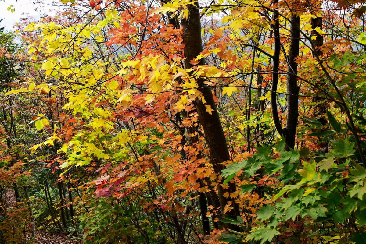 それより下は、黄色くなりはじめていますが、まだ青々とした木々もあります。