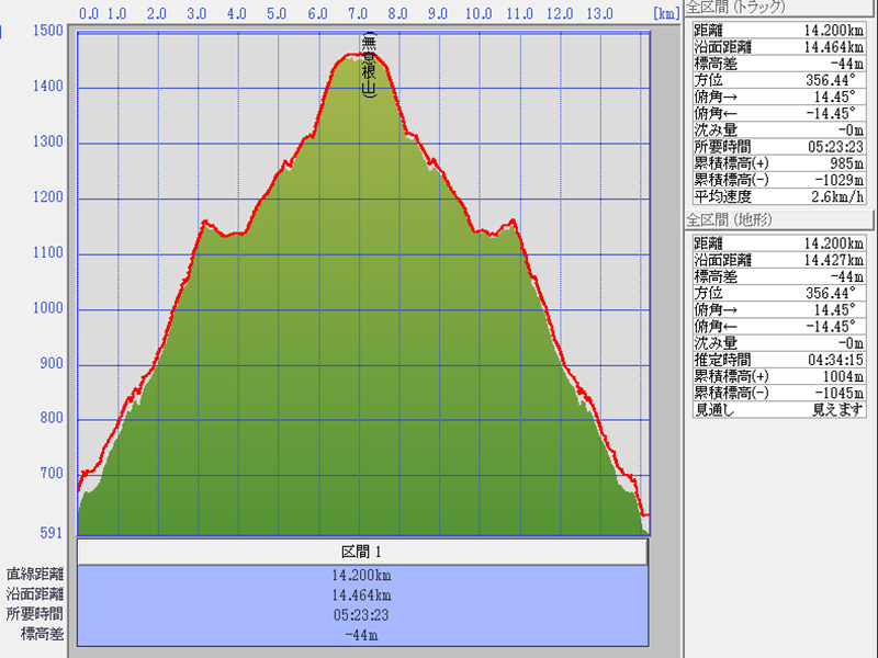 元山コースで、無意根山山頂を往復しました。 駐車場 07時30分 分岐 10時00分 (2時間30分) 無意根山 10時28分 (0時間28分) (2時間58分) 駐車場 12時53分 (2時間25分) (2時間25分) 合計所要時間 5時間23分 (GPS記録) 総上昇量 m 総下降量 m 累積標高(+)トラック 985m 累積標高(+)地形 1004m TP積算距離 14.4km GPS記録: 良好 写真なし