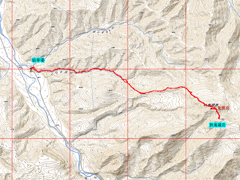 天塩岳に進む林道に少し入った場所に駐車して、於鬼頭岳を往復。