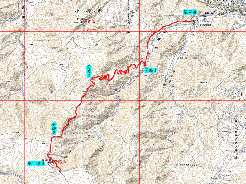 奥手稲山の山頂には小屋があるが、林道から山頂に登る道が判らなかったので、山頂付近から引き返した。
