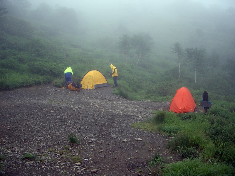 途中で雨が降り出し、十石峠付近では身体が冷えてきましたが、キャンプ予定地のブヨ沼が近いと考えてそのまま歩きました。