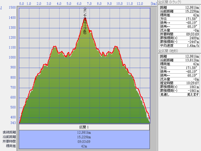 GPS記録: 良好 ただし、累積標高(+)は、不良。 沿面距離も多めに出ていると思われる。
