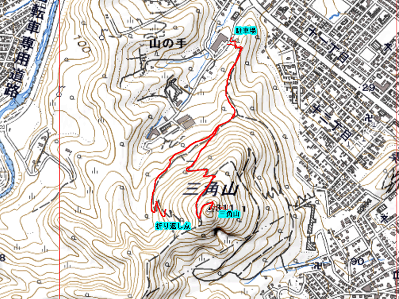 ザックが登山用ではないので、奥三角山に行くのは諦めました。