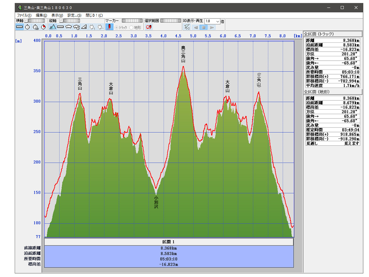 奥三角山の冬道コース(山頂−三角山方面の直登コース)は、現在は夏でも使用されているようです。