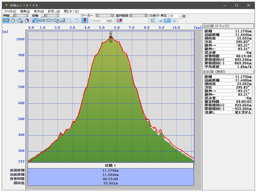山頂着 10時36分 (1時間41分) (2時間59分)