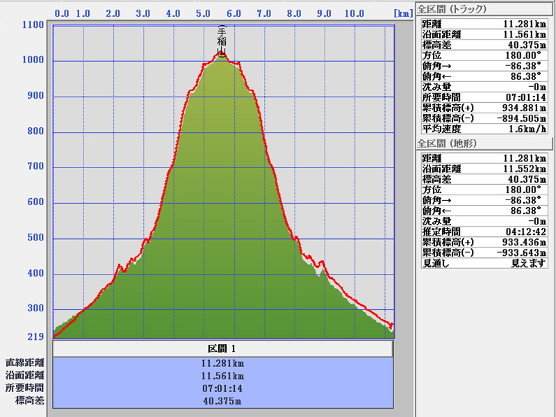 累積標高(+)トラック 934m 2016-10-05 の記録