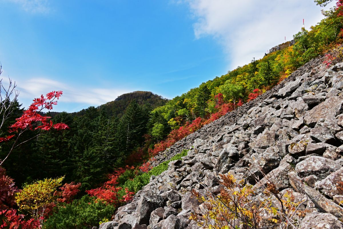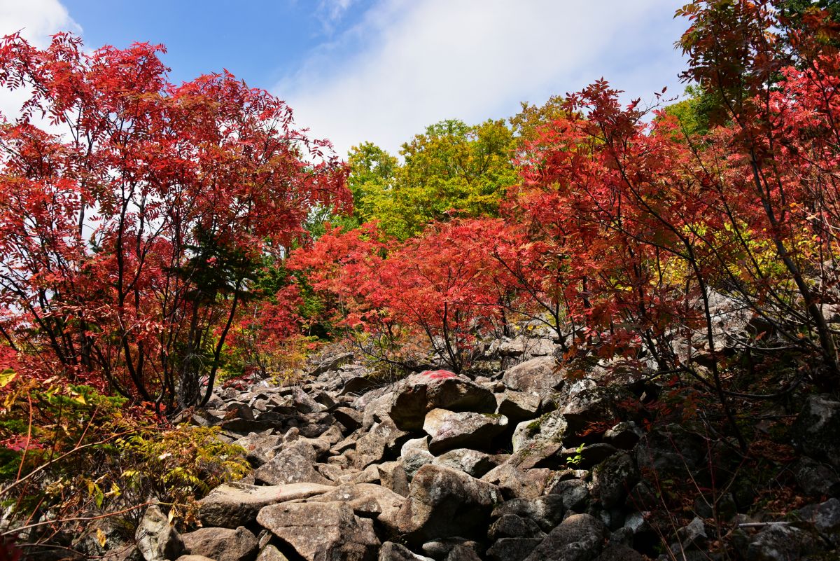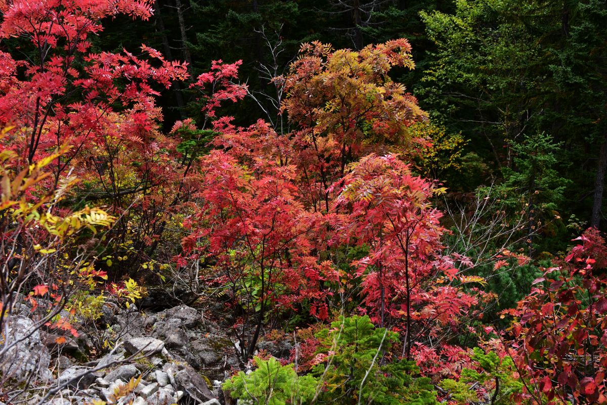 紅葉がどの程度進んでいるか少し不安でしたが、ガレ場は紅葉の最盛期でした。