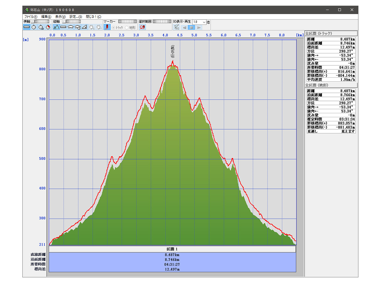 きつい縦走路の小林峠コースでは、もう少し差がでると思われます。