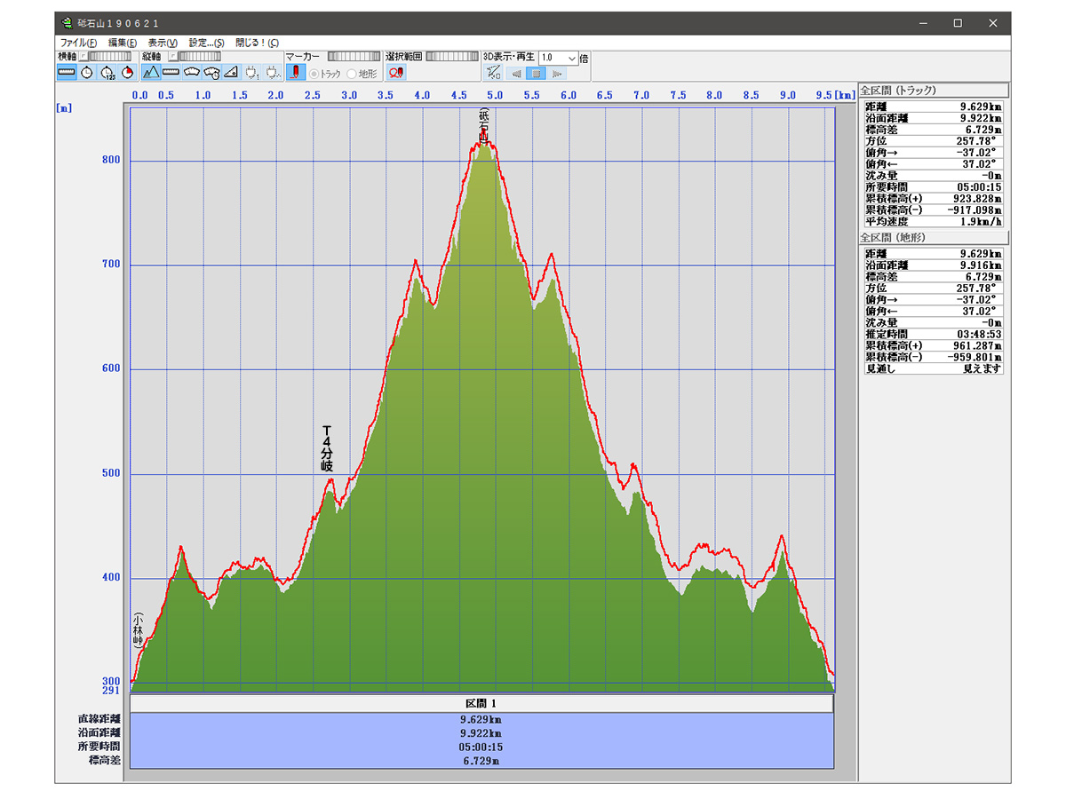山頂着 10時19分 (0時間37分) (2時間28分)