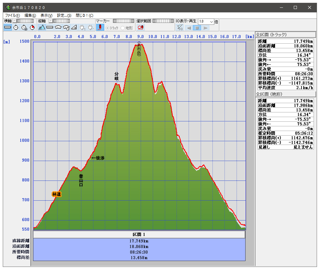 累積標高(+)地形 1142m