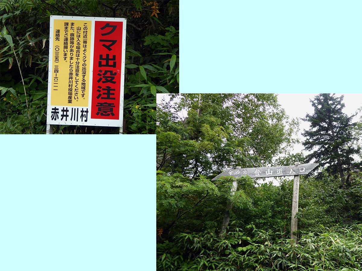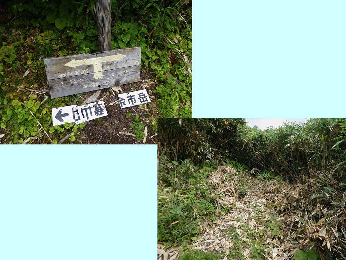 ゴンドラの山頂駅が稜線の登山道に接続しているので、このコースを「新道」と表示しており、従来の余市川(右股の沢川)コースは「旧道」と表示されています。