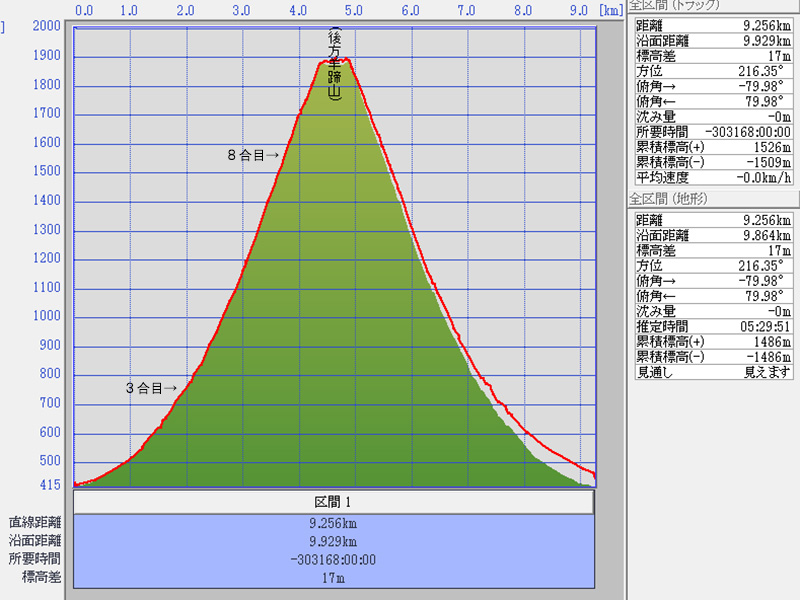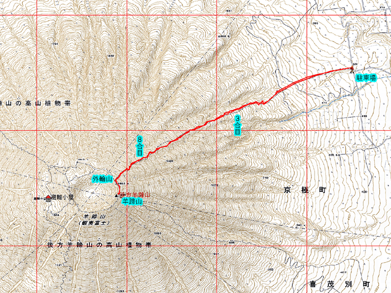 コースの上部はザレ場があり、真狩コースや比羅夫コースよりも少し判りづらいと感じた記憶がある。