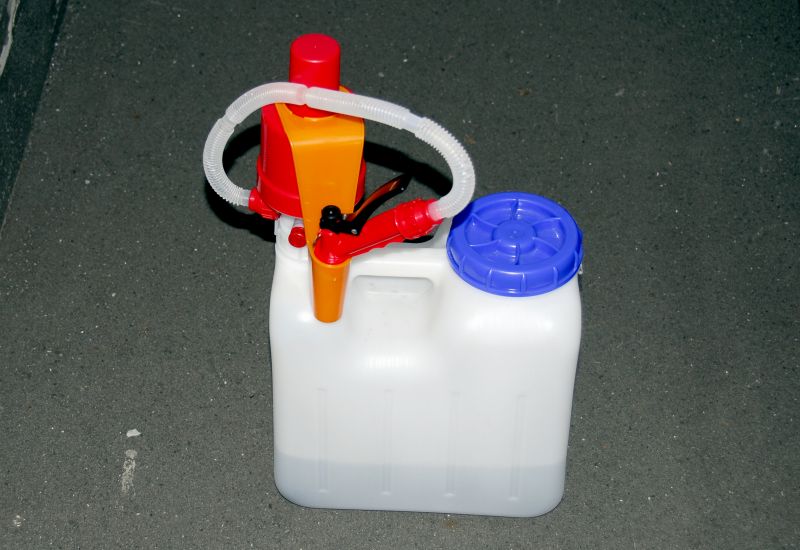 10Lポリタンク(飲料水)にセットした手動ポンプ(980円)
