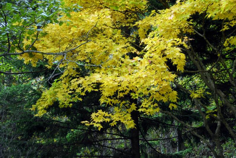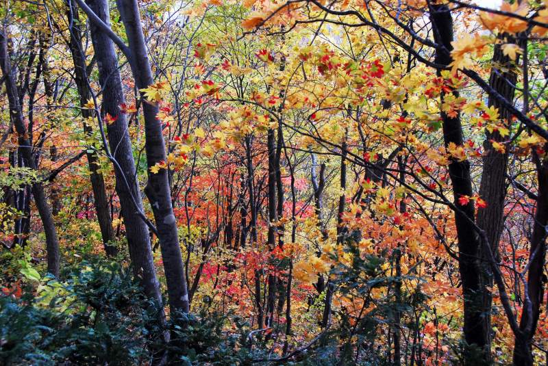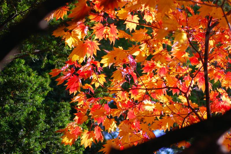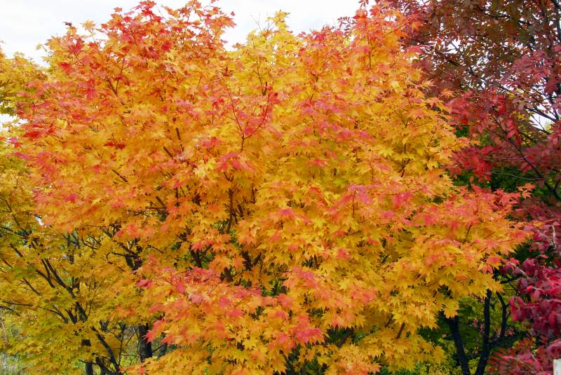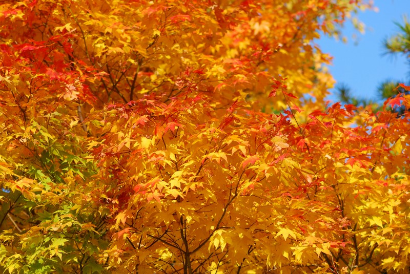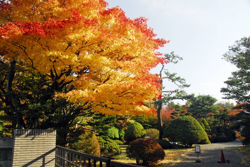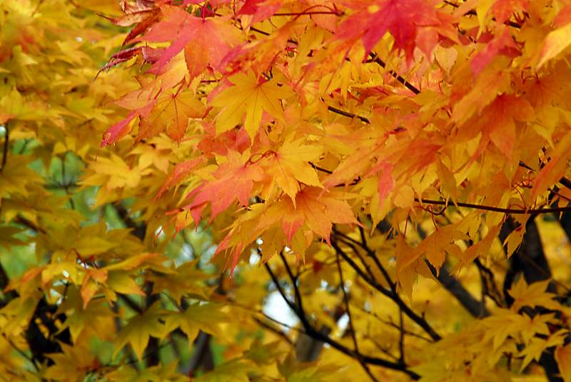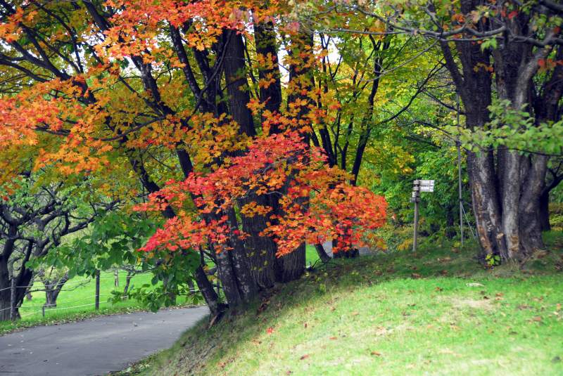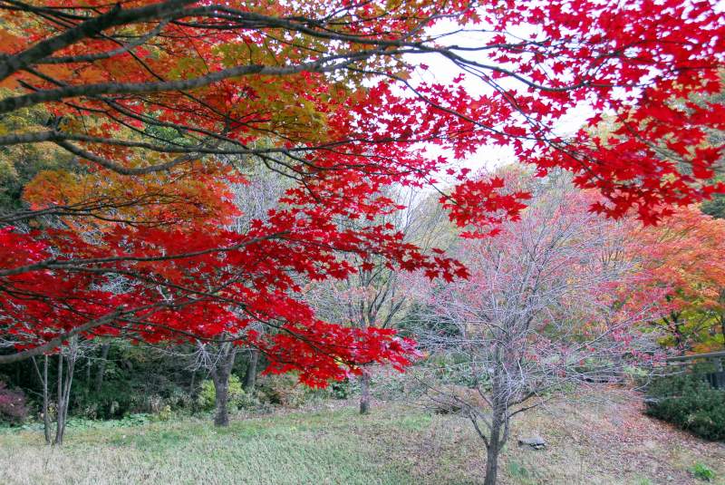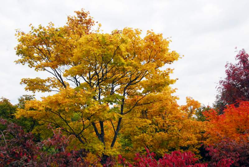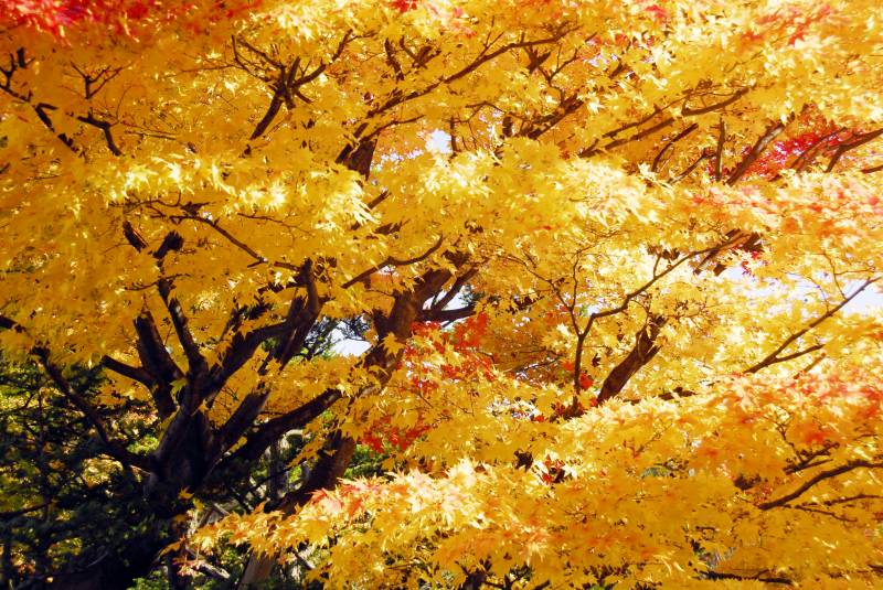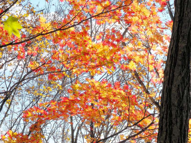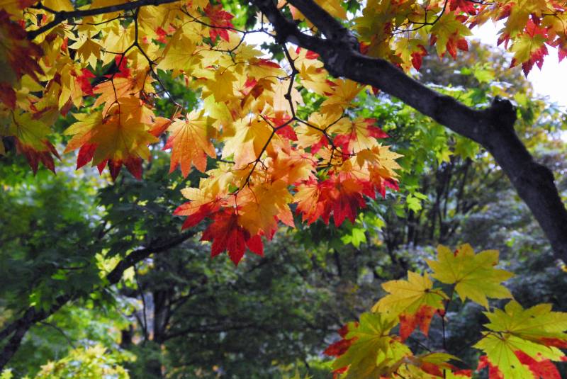 公園内の木々は全体的に見ると葉を落とし始めているようですが、樹木の種類によって既に落葉したものや、まだ頑張っているものなどに分かれるようです。