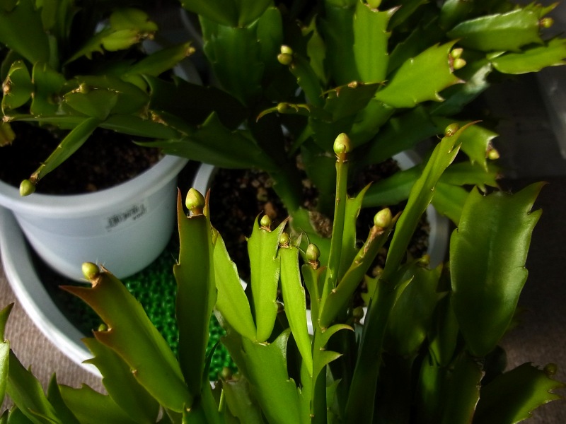 シャコバサボテンの蕾が日ごとに大きくなっています。