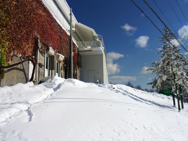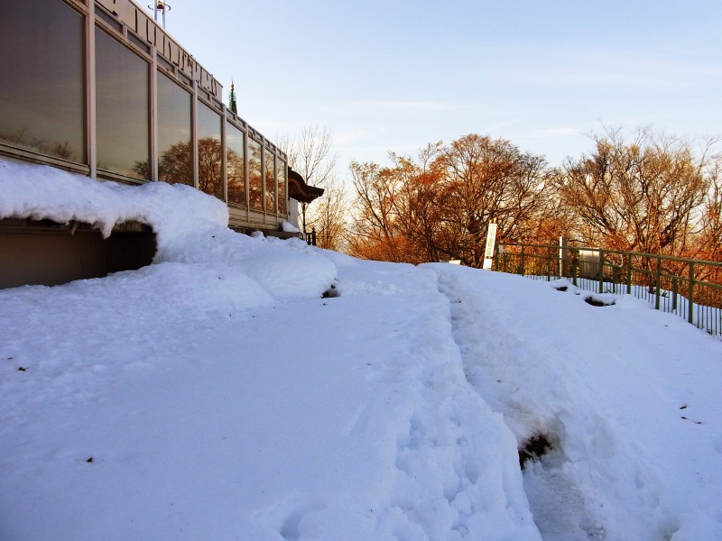 展望台の裏側には、雪が多く残っています。
