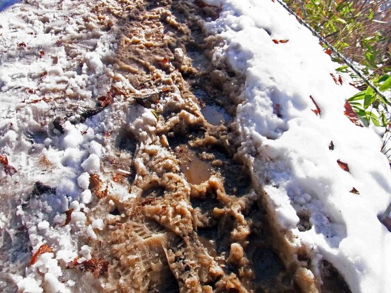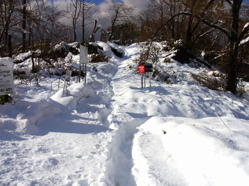 登山道の雪が融けて、大変歩きづらい状態に