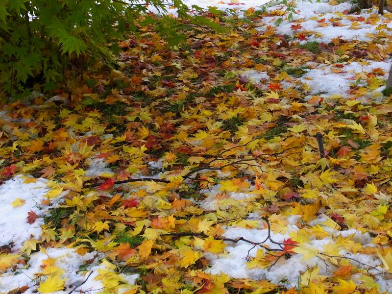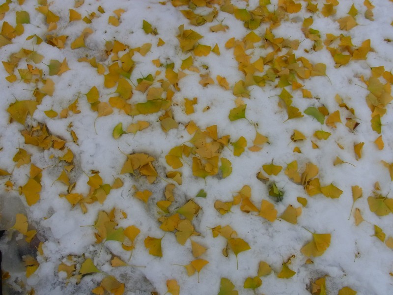 慈恵会病院にあるモミジがこの雪で大分落ちて