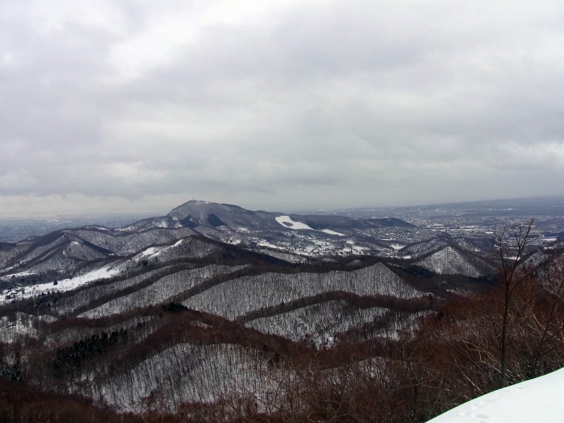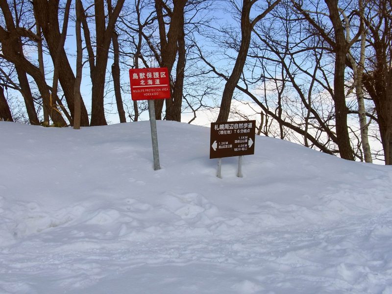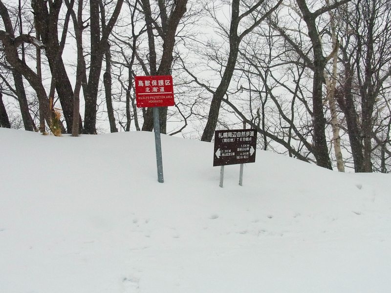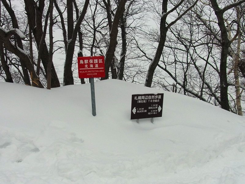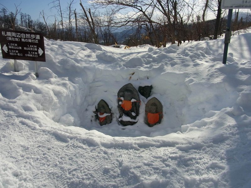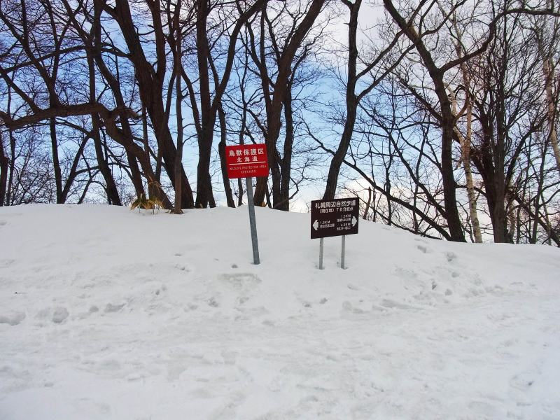 藻岩山の登山道には、まだ確り雪があります。登山道の表面は凍って硬くなっています。
