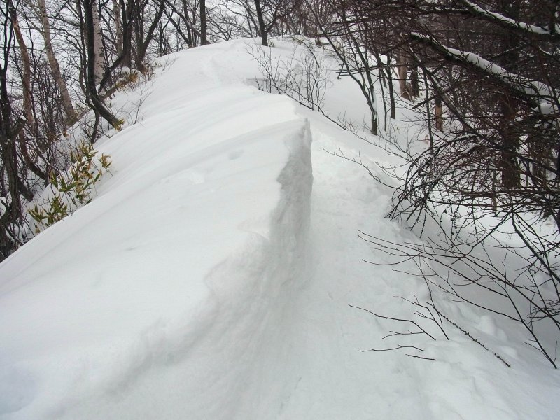 気温が上がっているので、雪は緩んできていますが、登山道は踏み固められているので、まだ踏み抜くことはありませんでした。